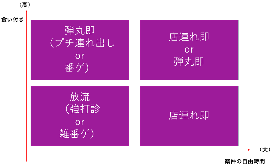 食い付きが高ければ高いほど弾丸より、案件の状況、つまり使える時間が少なければ少ないほど弾丸より。